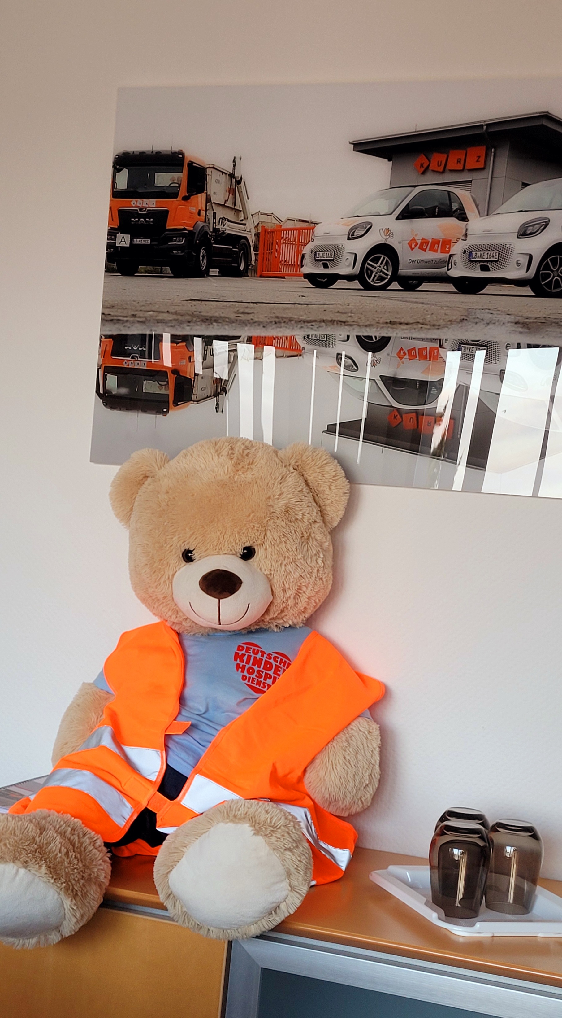 Foto Mitte: Bärenbotschafter Hope macht Praktikum bei der KURZ Entsorgung GmbH