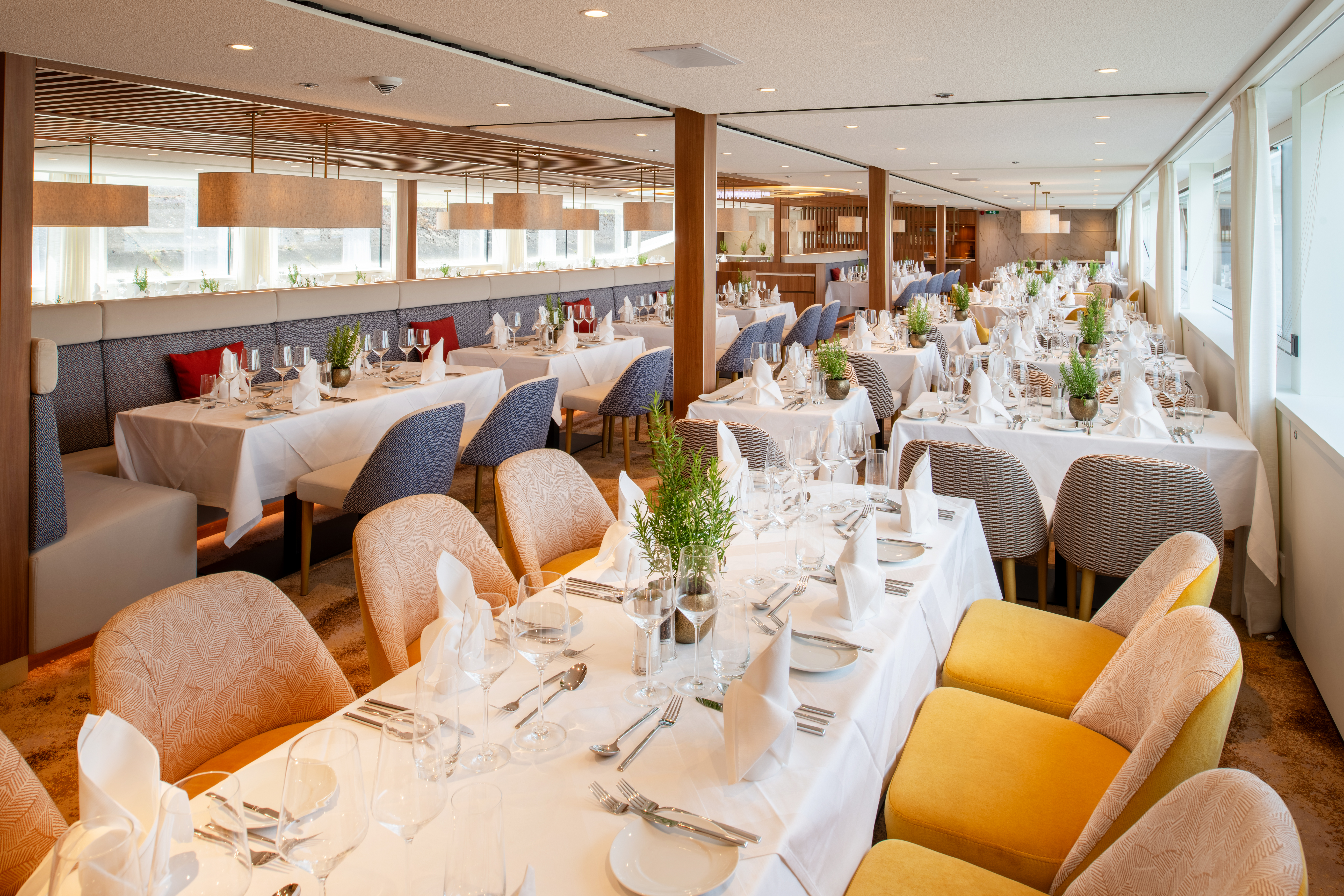 Sonja Vock, Head of Onboard Operations bei Thurgau Travel und damit zuständig für das Programm der Flusskreuzfahrten, sieht in den „Genuss der Sinne“-Reisen eine konsequente und zeitgemäße Erweiterung des Angebots: „Kulinarische Reisen sind auf dem Vormarsch. Das konnten wir anhand der Nachfragen und Erwartungen unserer Kundinnen und Kunden beobachten. Besonders eigenständige vegetarische Gerichte wurden gewünscht und so kamen wir auf Pascal Haag, den ehemaligen Rezeptentwickler des Hiltl, dem ältesten vegetarischen Restaurant der Welt. Zusammen mit uns kreierte er ein komplett vegetarisches 5-Gänge Menü und schulte auch das Personal dazu. Den Trend zur Kulinarik-Reisen bestätigt auch eine Umfrage zu den „Travel Predictions 2024*. Hier gaben 78 Prozent der Befragten an, dass sie sich nach neuen Geschmacksrichtungen sehnen, knapp 50 Prozent planen Reisen, die bestimmte Restaurants oder Gerichte zum Inhalt haben und 61 Prozent wollen mehr über die Ursprünge besonderer Gerichte eines Reiseziels erfahren. Zusammen mit den eigenen Menüs kommen wir diesen Wünschen mit zwei kulinarischen Schwerpunktreise-Varianten auf Rhein und Donau nach. Eine weitere Facette des Reisens und das auf zwei ganz besonderen Schiffen.“